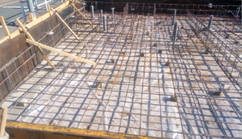 建物をしっかり支えるために大切な足元の墓礎部分。コンクリートで固めて、見えなくなってしまう前に鉄筋の太さや配置をチェックします。
