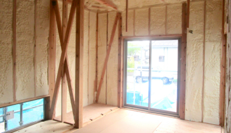 イング建築設計で作る自然素材の家は、無垢の木を使った木造住宅です。あたたかく安らげる「最高の癒し空間」を提供しています。高断熱・高気密を実現するために様々な断熱材がありますが、イング建築設計ではウレタン吹付け断熱を標準採用としています。ウレタン断熱材を吹付け発泡することで隙間を埋め、気密性が高まるので、住まいが魔法瓶のような状態になって保温効果や保冷効果が高まります。